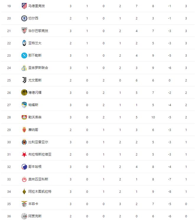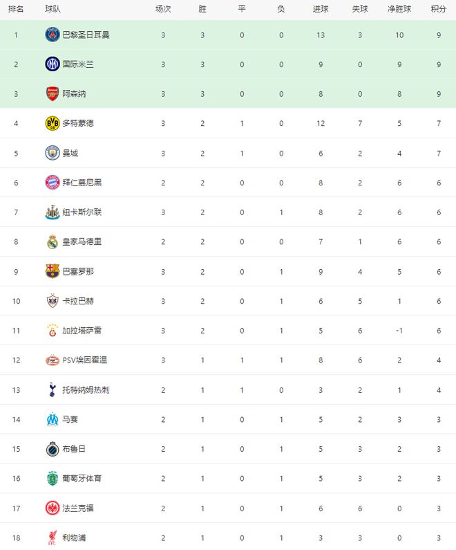 欧冠最新积分榜如下: